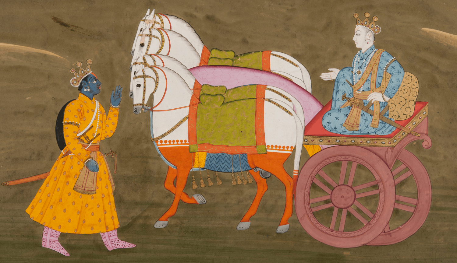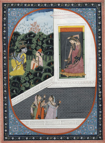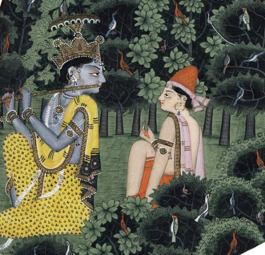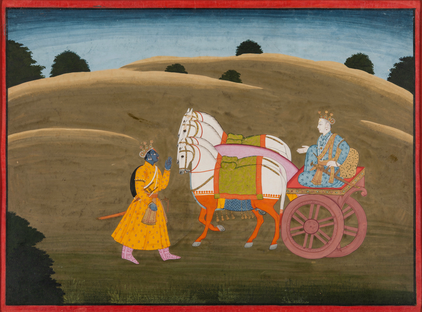 KRISHNA STEALS THE PARIJATA TREE, ILLUSTRATION FROM THE HARIVAMSA
